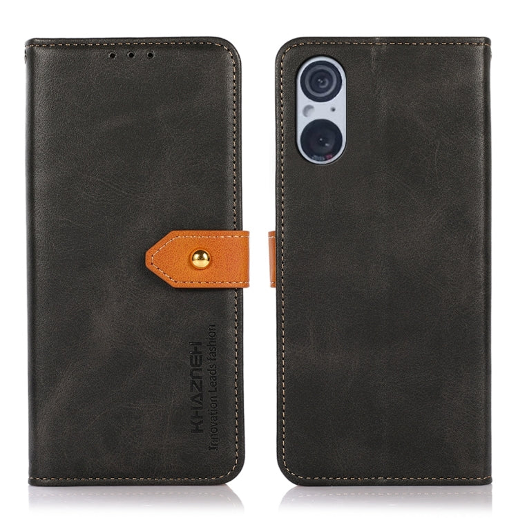 Funda para Sony Xperia 5 V Khazneh Cuero con Tapa Textura Piel de Vaca (Negro)