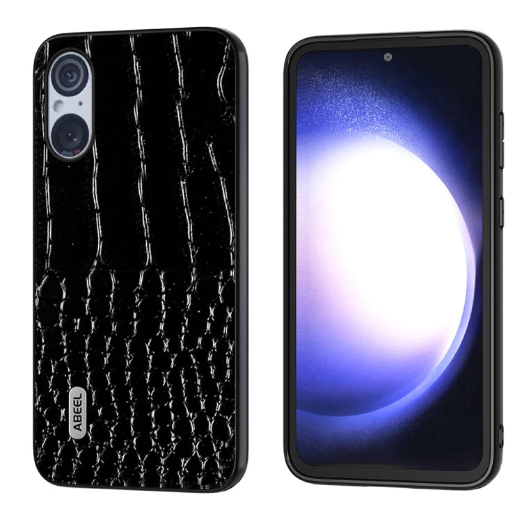 Funda para Sony Xperia 5 V Abeel Cuero Genuino con Patrón de Cocodrilo y Borde Negro (Negro)