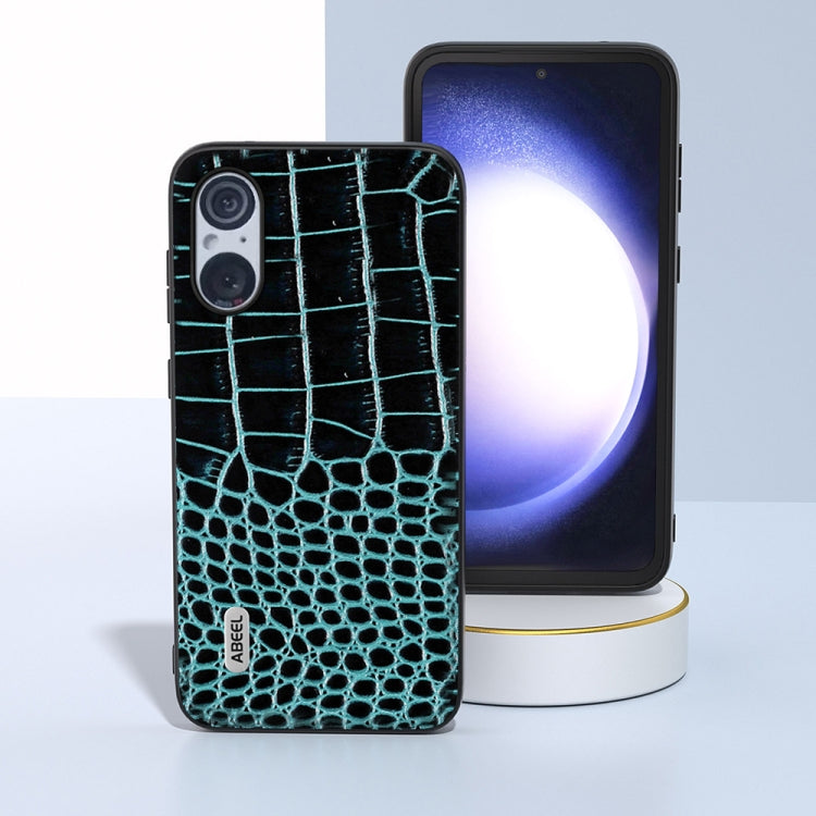 Funda para Sony Xperia 5 V Abeel Cuero Genuino con Borde Negro y Patrón Cocodrilo (Azul)