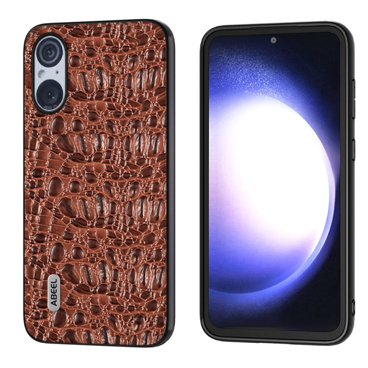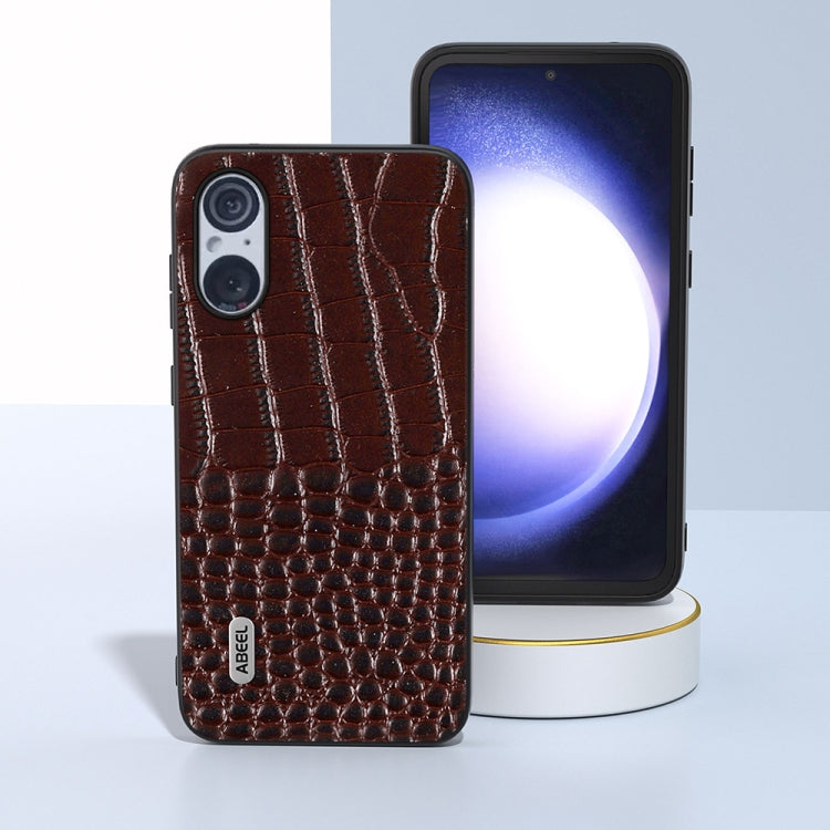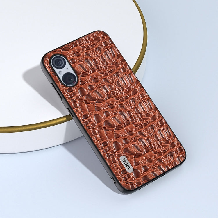 Funda para Sony Xperia 5 V Abeel Cuero Genuino con Patrón de Cocodrilo y Borde Negro (Café)