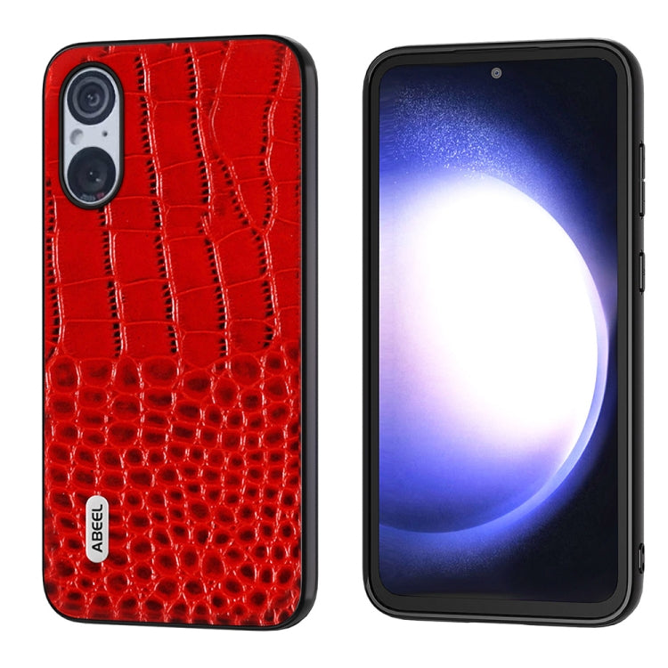Funda para Sony Xperia 5 V Abeel Cuero Genuino con Borde Negro y Patrón Cocodrilo (Rojo)