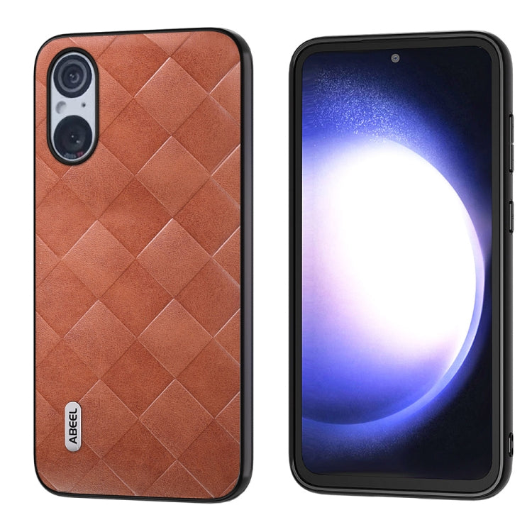 Funda para Sony Xperia 5 V Abeel Weave Plaid PU para Teléfono (Marrón)
