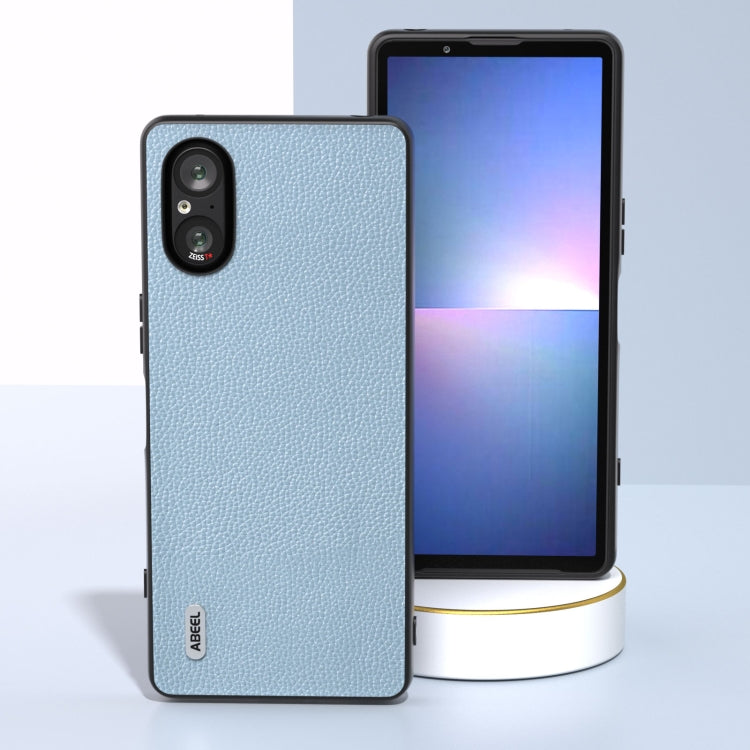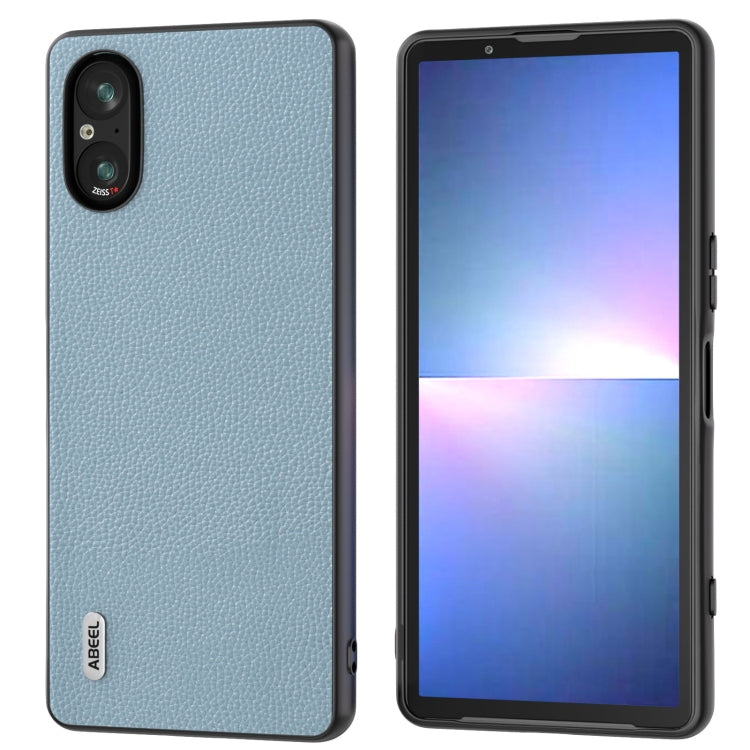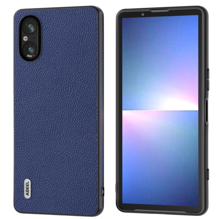 Funda para Sony Xperia 5 V Abeel Cuero Genuino con Borde Negro (Azul)