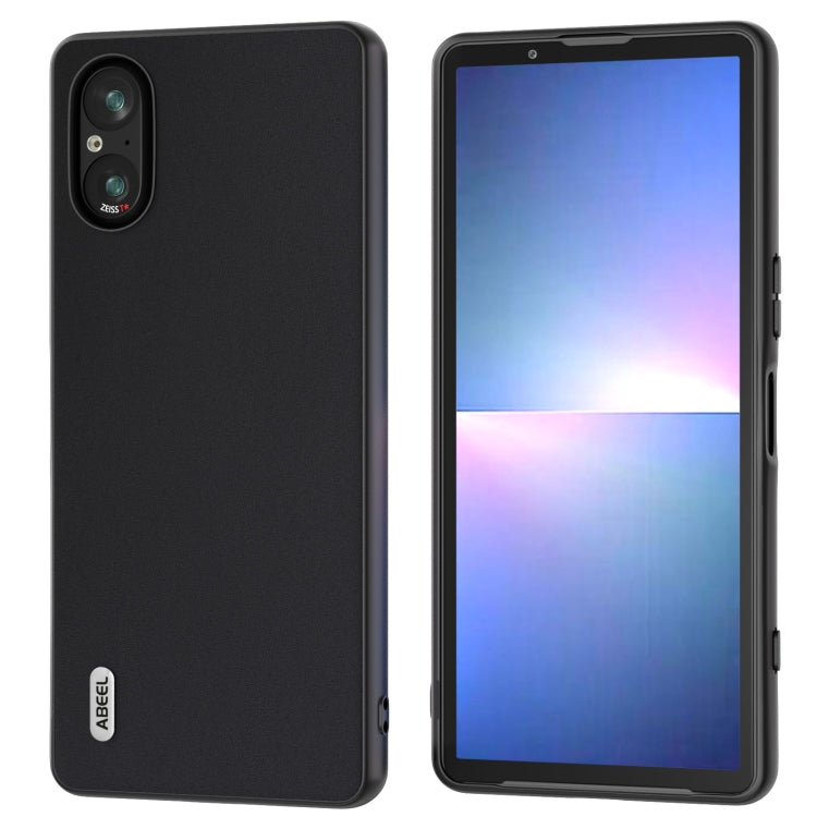Funda para Sony Xperia 5 V Abeel Cuero Genuino con Borde Negro Suave (Negro)