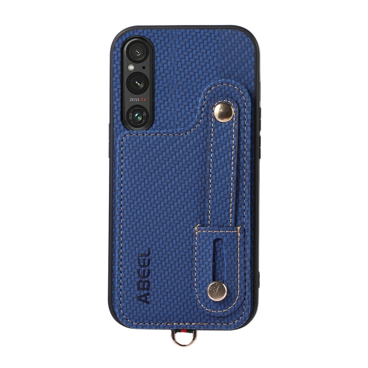 Funda para Sony Xperia 1 V Abeel con Tarjetero RFID de Fibra de Carbono (Azul)