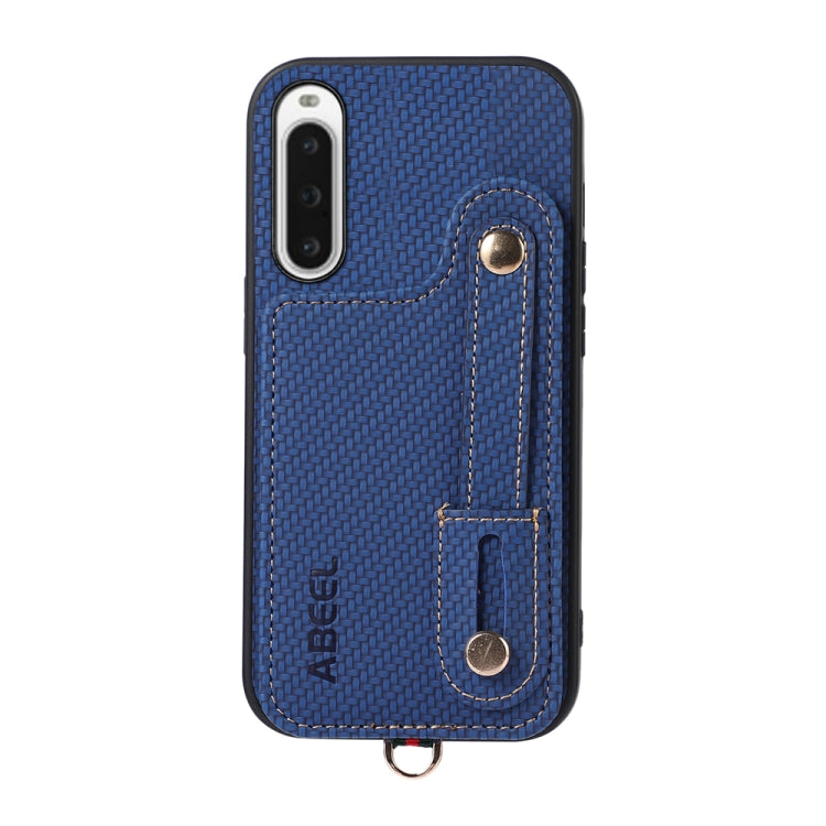 Funda para Sony Xperia 10 V Abeel con Tarjetero RFID de Fibra de Carbono (Azul)