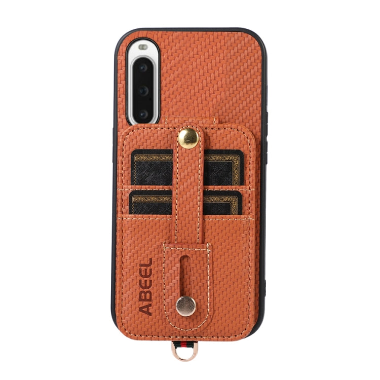 Funda para Sony Xperia 10 V Abeel con Tarjetero RFID y Fibra de Carbono (Marrón)