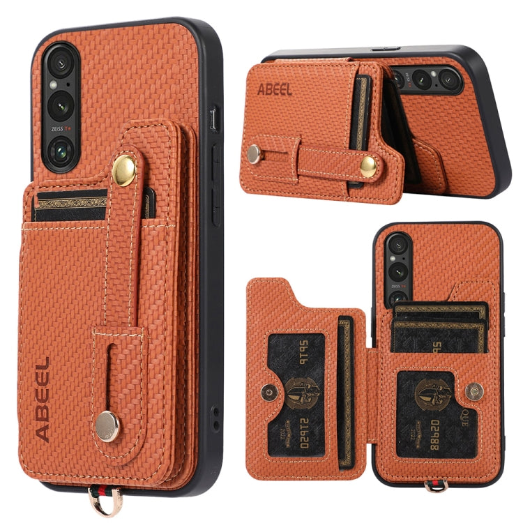 Funda para Sony Xperia 1 V Abeel con Tarjetero RFID de Fibra de Carbono (Marrón)