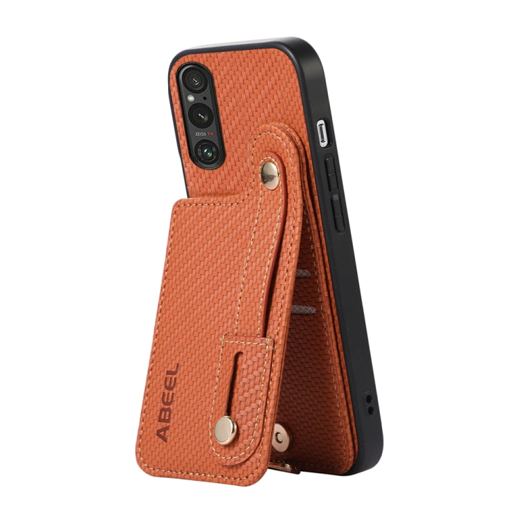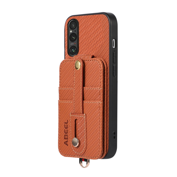 Funda para Sony Xperia 1 V Abeel con Tarjetero RFID de Fibra de Carbono (Marrón)
