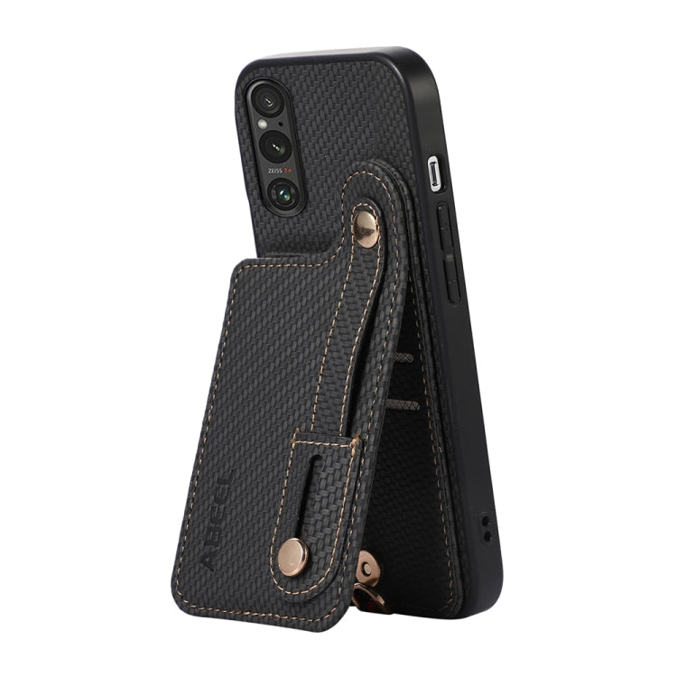 Funda para Sony Xperia 1 V Abeel con Tarjetero RFID de Fibra de Carbono (Negro)