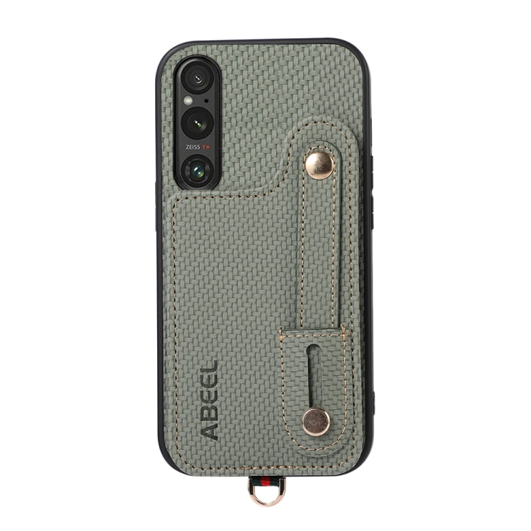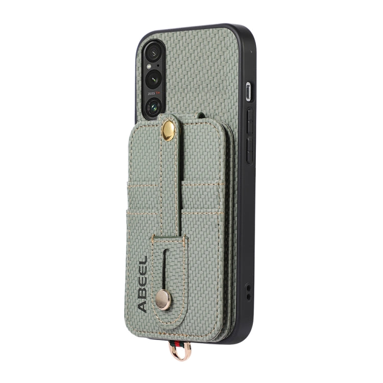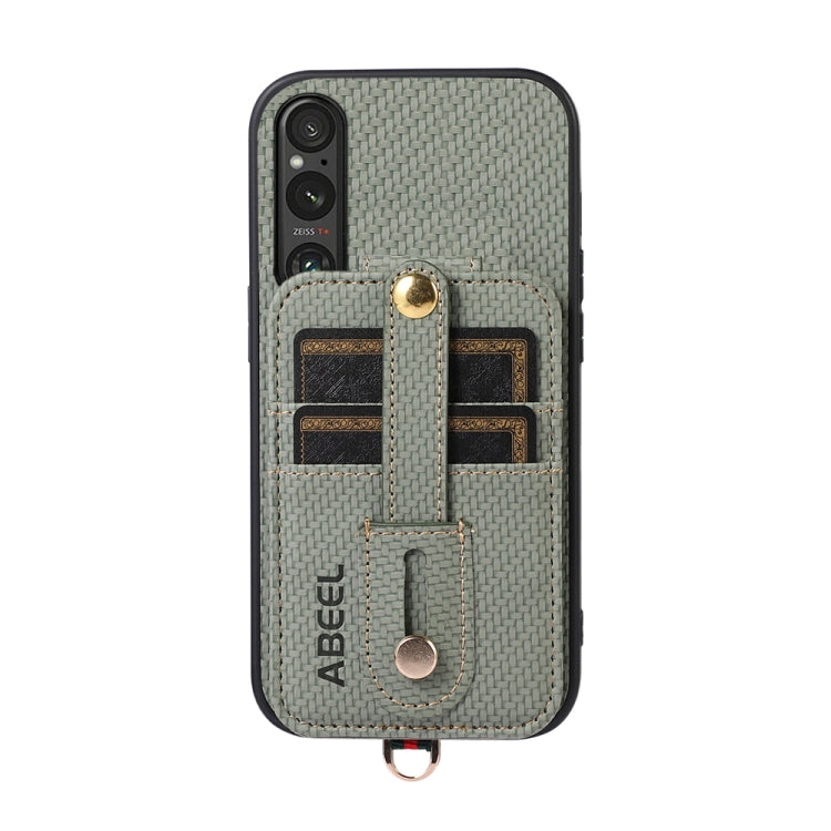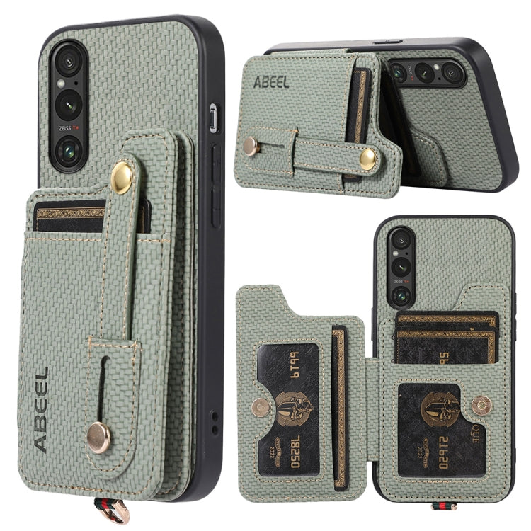 Funda para Sony Xperia 1 V Abeel con Tarjetero RFID y Fibra de Carbono (Verde)