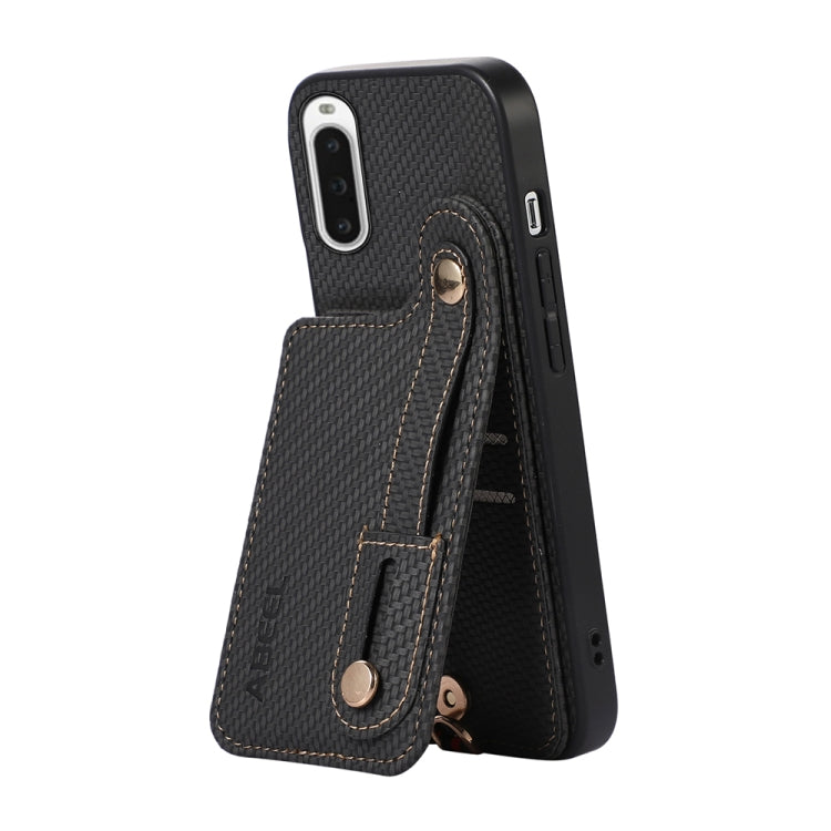 Funda para Teléfono Sony Xperia 10 V Abeel con Tarjetero RFID Fibra de Carbono (Negro)
