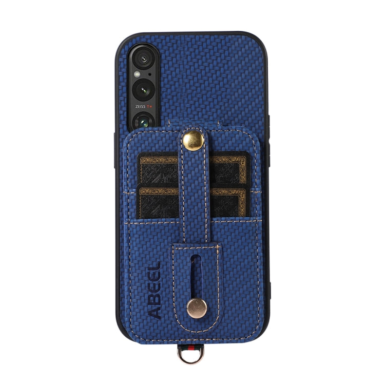 Funda para Sony Xperia 1 V Abeel con Tarjetero RFID de Fibra de Carbono (Azul)