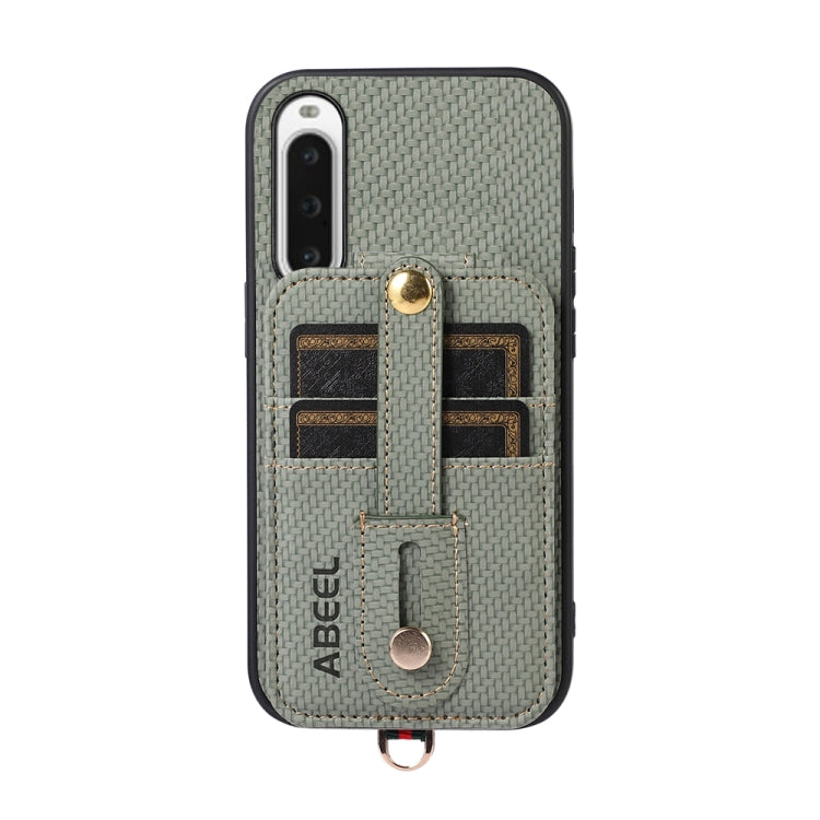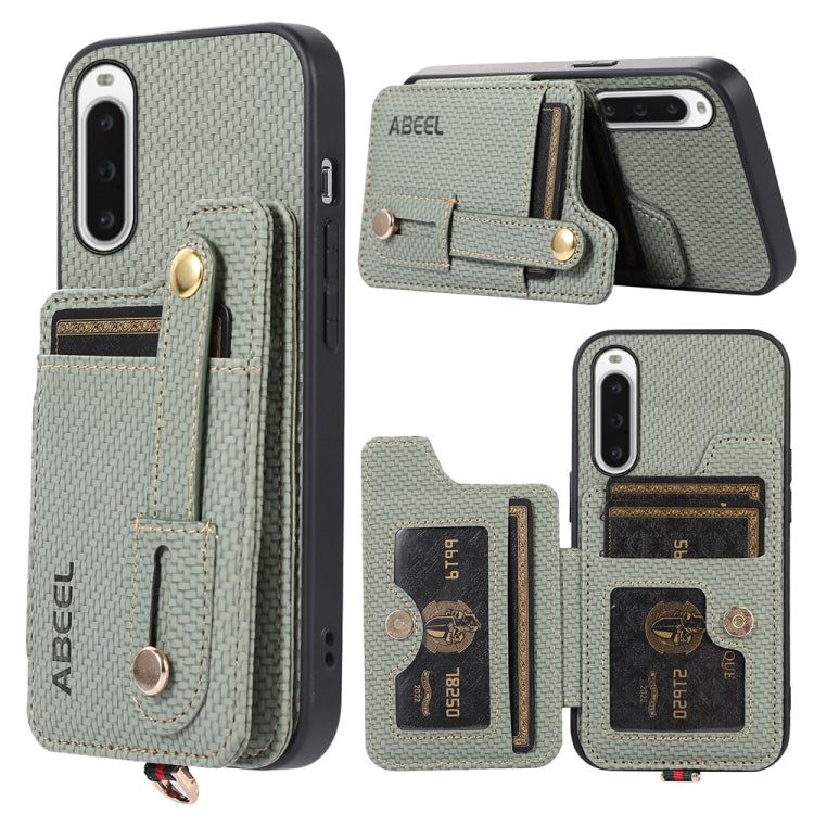 Funda para Sony Xperia 10 V Abeel con Tarjetero RFID de Fibra de Carbono (Verde)