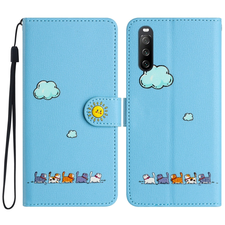 Funda de Cuero para Sony Xperia 10 Iv con Gatos de Dibujos Animados (Azul)