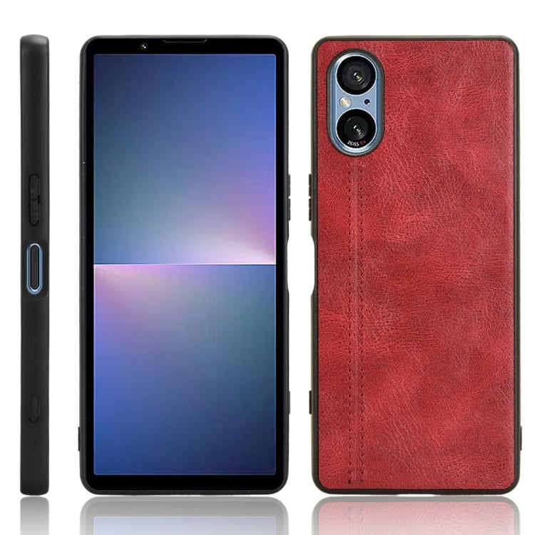 Funda para Sony Xperia 5 V con Patrón de Vaca Costura PC + PU + TPU (Rojo)