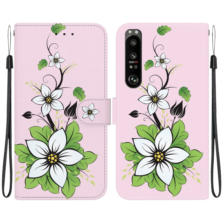 Funda de Cuero para Sony Xperia 1 III con Dibujo Coloreado y Textura de Cristal (Lirio)