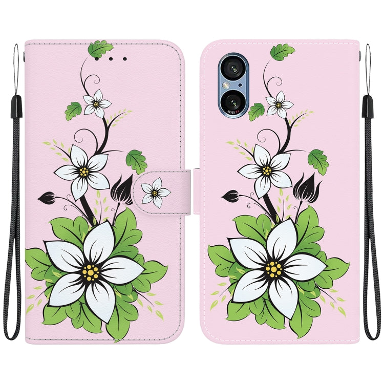 Funda de Cuero para Sony Xperia 5 V con Dibujo Coloreado y Textura de Cristal (Lirio)