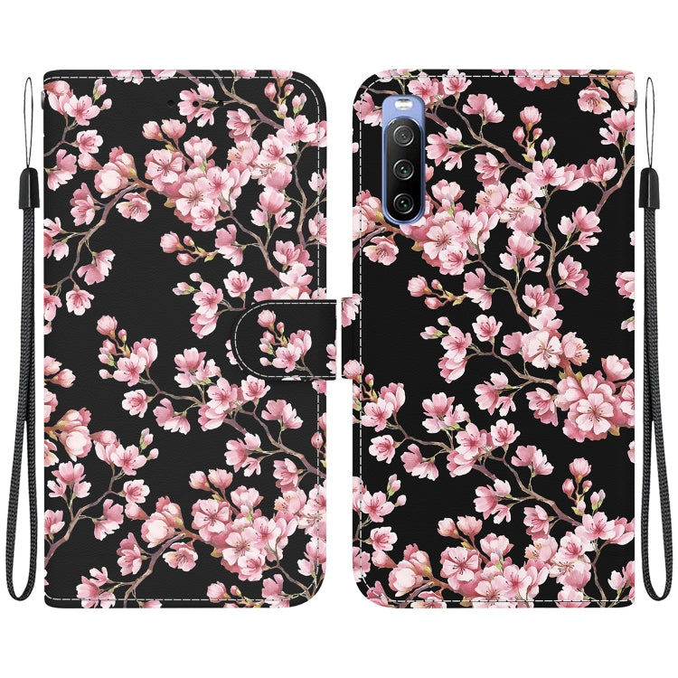Funda para Sony Xperia 10 III de Cuero con Dibujo Coloreado y Textura de Cristal (Flor de Ciruelo)