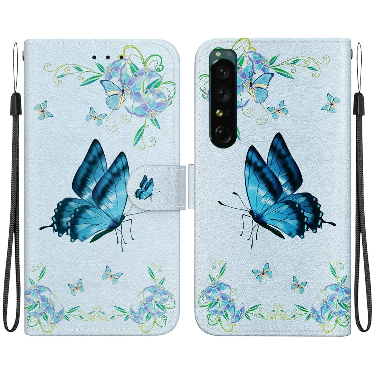 Estuche para Sony Xperia 1 III de Cuero con Dibujo Coloreado y Textura de Cristal (Azul)