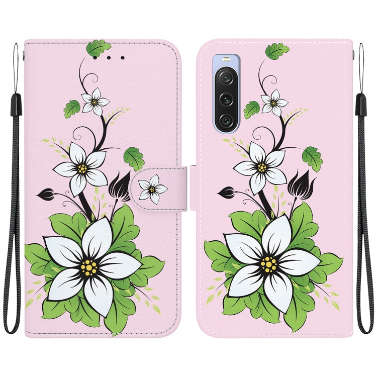 Funda de Cuero Sony Xperia 10 V (2023) con Dibujo Coloreado y Textura de Cristal (Lily)