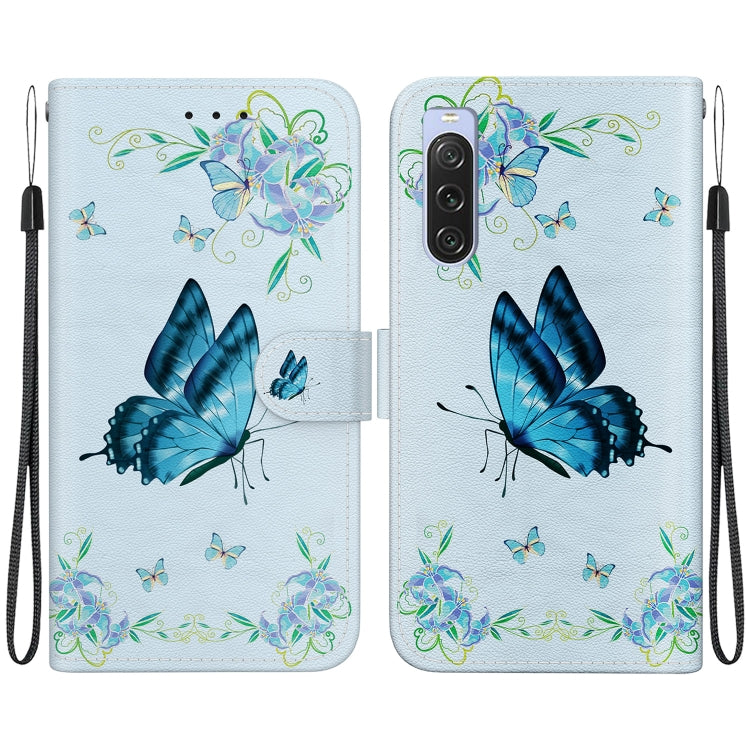 Funda de Cuero para Sony Xperia 10 V (2023) con Dibujo Coloreado y Textura de Cristal (Azul)