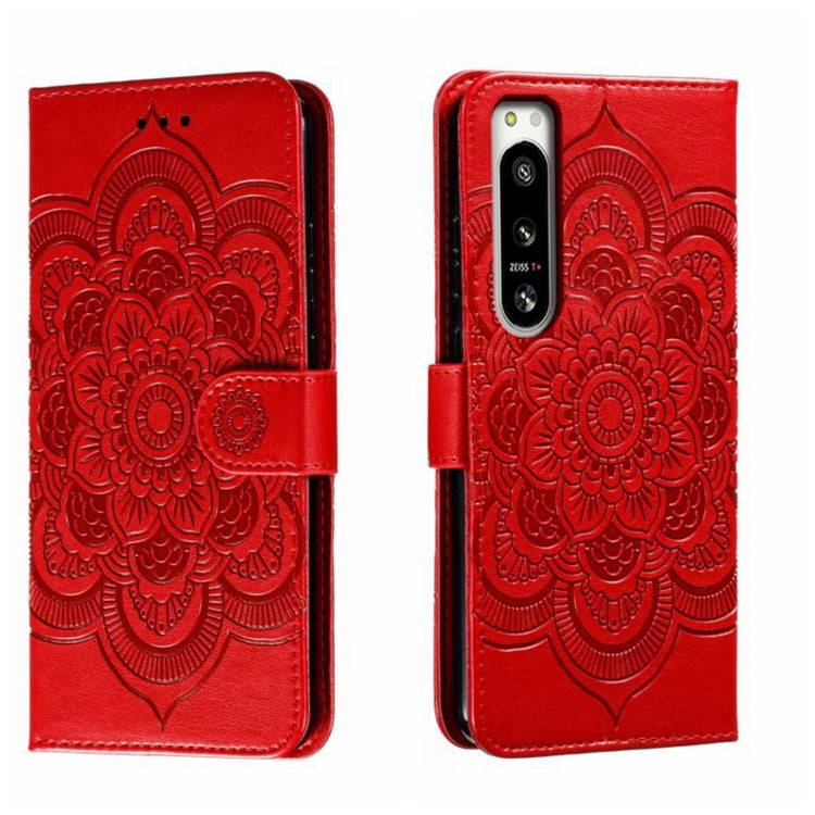 Funda de Cuero Sony Xperia 5 IV con Patrón En Relieve Sun Mandala (Rojo)