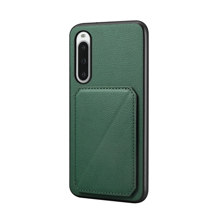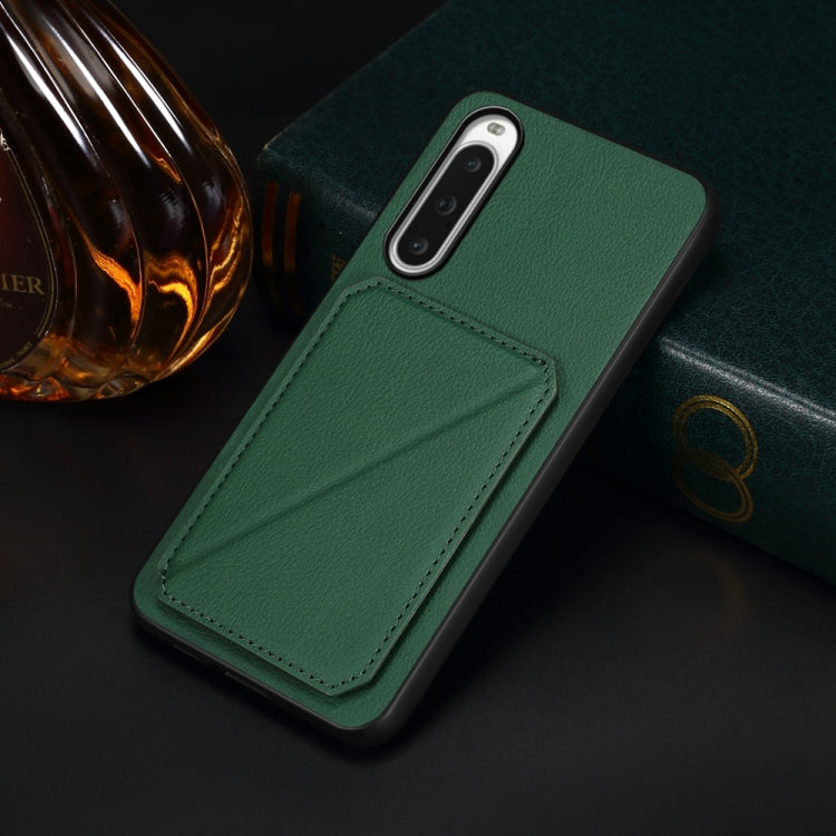 Funda para Sony Xperia 10 V D04 con Ranura para Tarjeta Dual y Textura de Becerro (Verde)