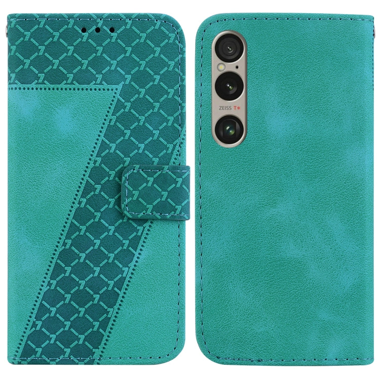 Funda de Cuero para Sony Xperia 1 Vi con Relieve en Forma de 7 (Verde)