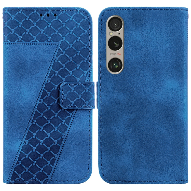 Funda de Cuero para Sony Xperia 1 Vi con Relieve en Forma de 7 (Azul)