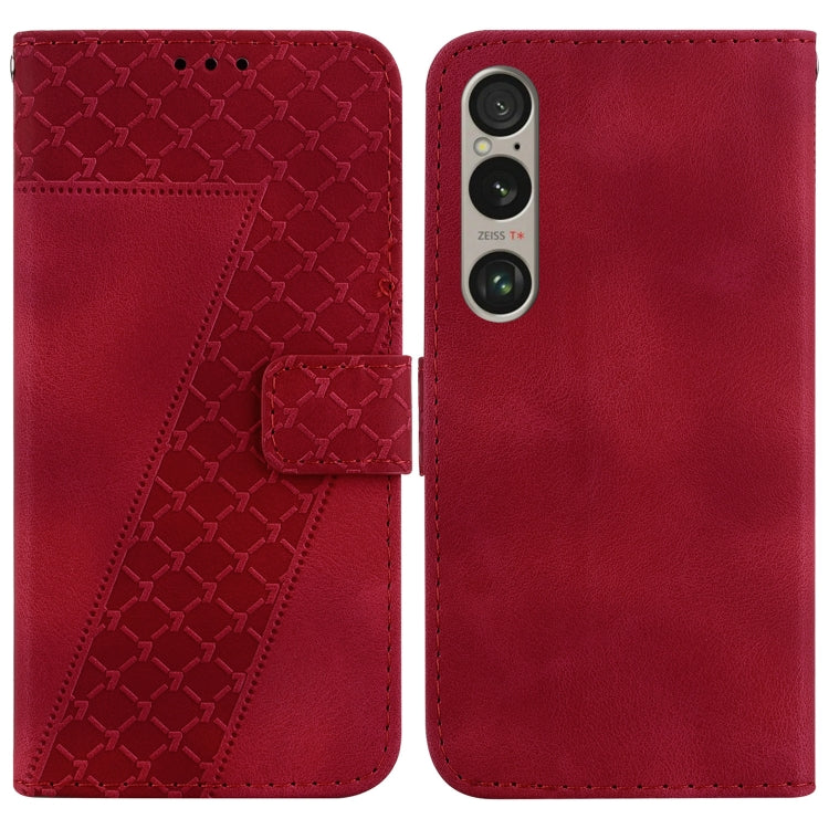 Funda de Cuero para Sony Xperia 1 Vi con Relieve en Forma de 7 (Rojo)
