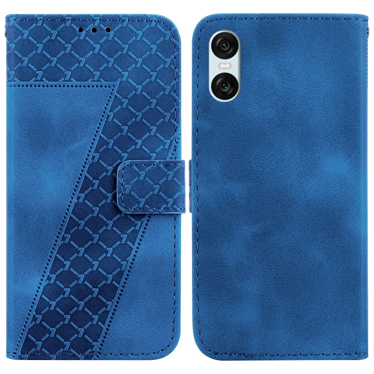 Funda de Cuero para Sony Xperia 10 Vi con Relieve en Forma de 7 (Azul)