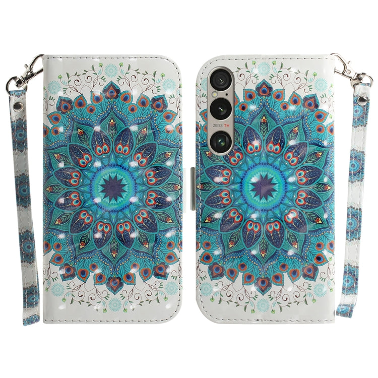 Funda de Cuero para Sony Xperia 1 Vi con Tapa Horizontal y Diseño 3D (Corona de Pavo Real)