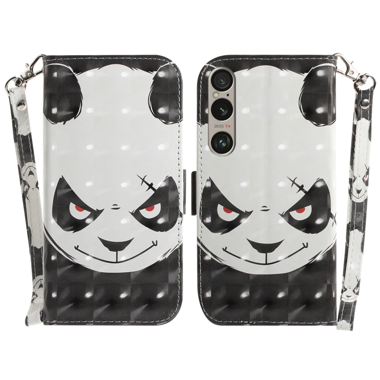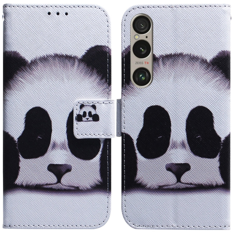 Funda de Cuero con Tapa para Sony Xperia 1 Vi con Dibujo Coloreado (Panda)