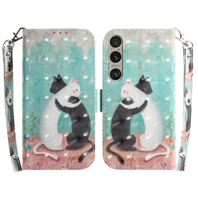 Funda de Cuero para Sony Xperia 1 Vi con Tapa Horizontal y Diseño 3D Gato (Blanco y Negro)