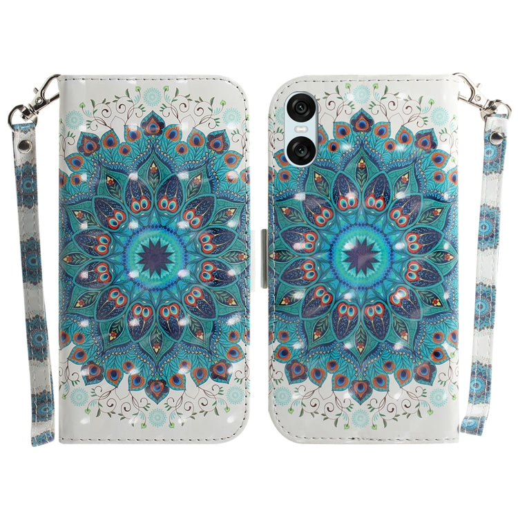 Funda de Cuero para Sony Xperia 10 Vi con Tapa Horizontal y Diseño 3D (Corona de Pavo Real)