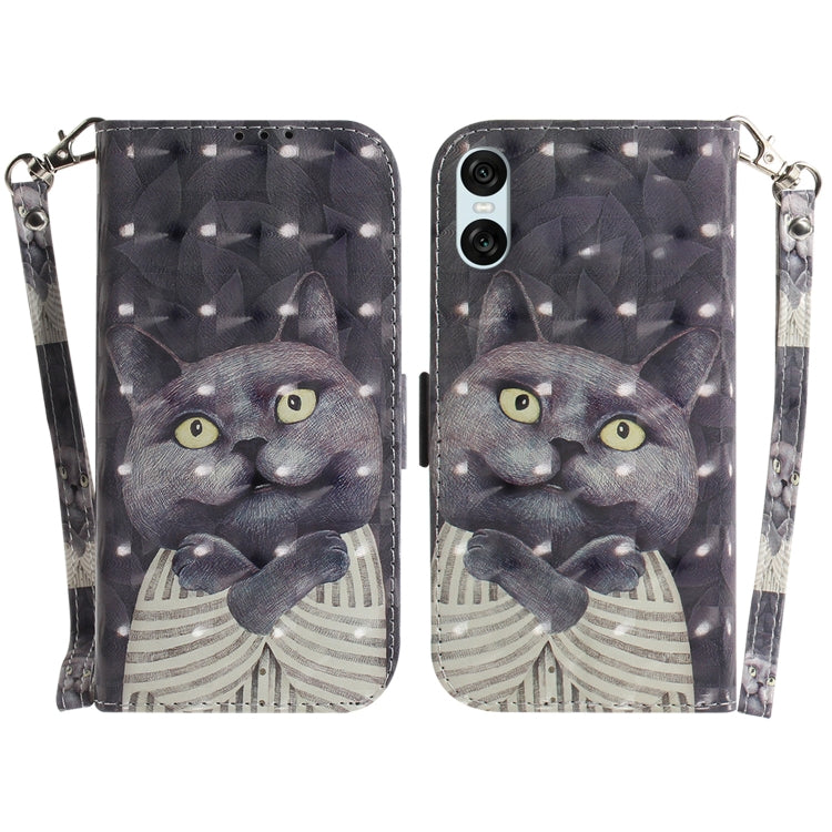 Funda para Sony Xperia 5 Vi de Cuero con Tapa Horizontal y Diseño 3D Lindo Gato