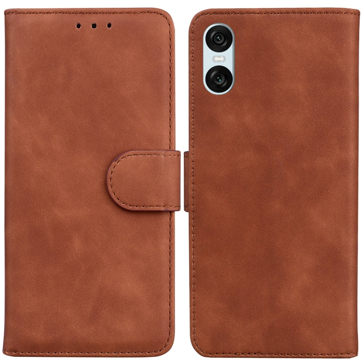 Funda de Cuero con Tapa para Sony Xperia 10 Vi Skin Feel Pure Color (Marrón)