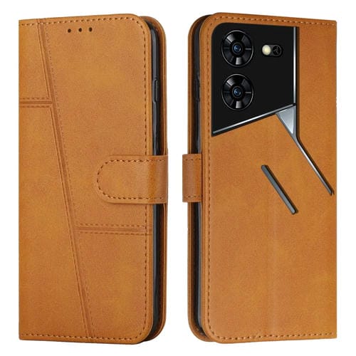 Funda para teléfono Tecno Pova 5 Pro de cuero con hebilla y textura de becerro con costura (Amarillo)