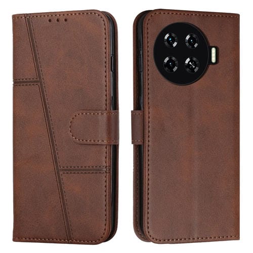 Funda de Cuero para Tecno Pova 5 Pro Skin Feel con Patrón de Rayas y Cordón Largo (Marrón)