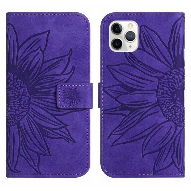 Funda Flip de Cuero para iPhone 11 Pro Max Skin Feel Sun Flower Pattern con Cordón (Púrpura)