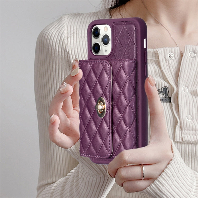 Funda para iPhone 11 Pro Max Cartera Horizontal Hebilla de Metal Rombico Cuero (Púrpura)
