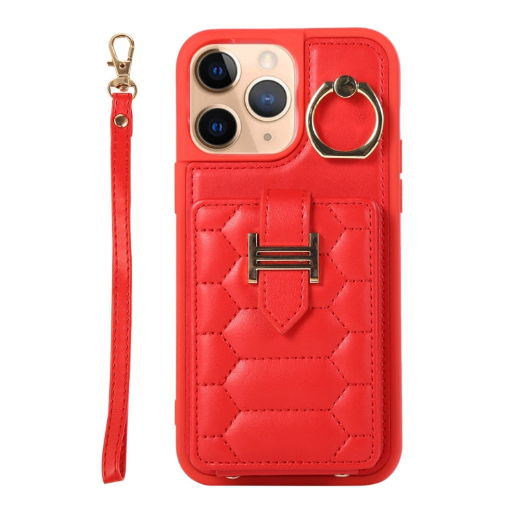 Funda para teléfono iPhone 11 Pro Max Vertical Card Bag Ring Holder con doble cordón (Rojo)