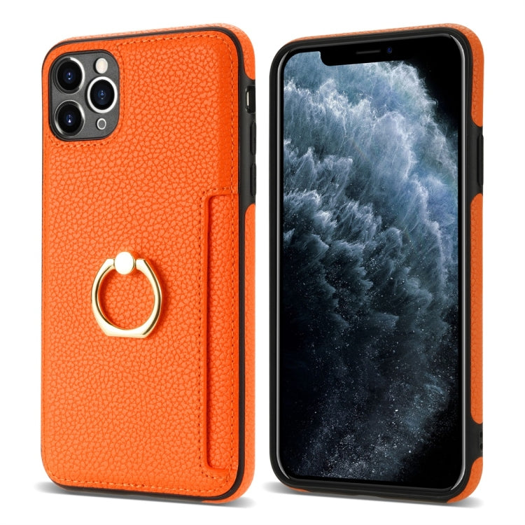 Funda Trasera para iPhone 11 Pro Max Ring Card Litchi de cuero (Naranja)
