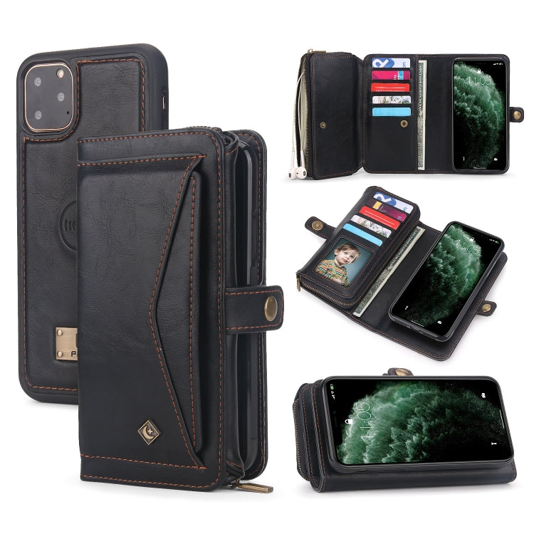 Funda para teléfono iPhone 11 Pro Max Cuero con Billetera y Cremallera Multifuncional (Negro)