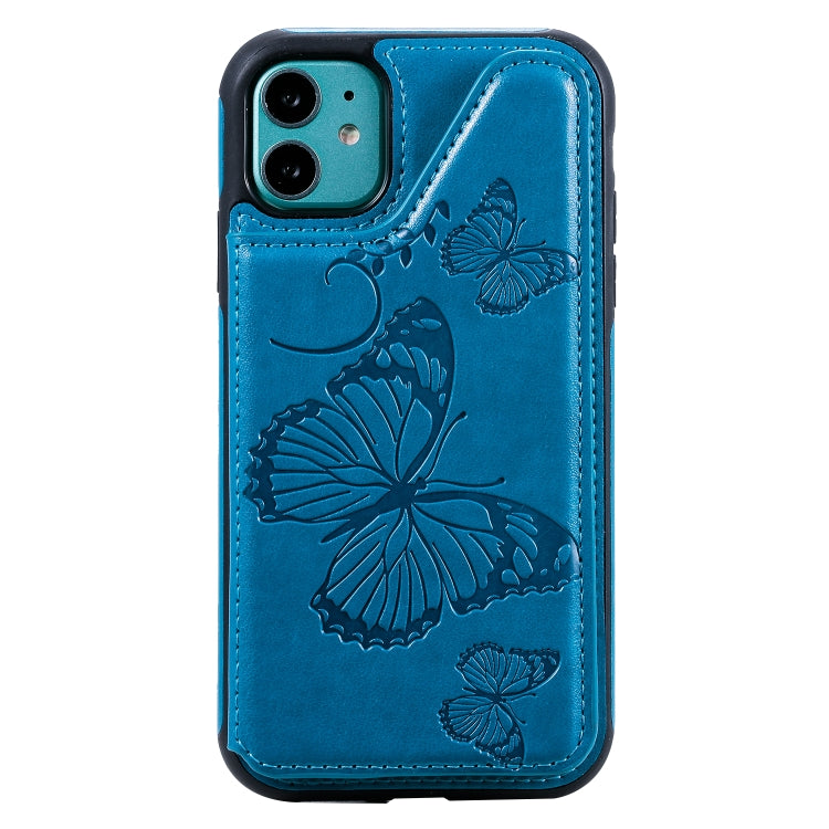 Funda Protectora iPhone 11 Pro Patrón Mariposa Soporte Ranuras Tarjetas Marco Fotos (Azul)
