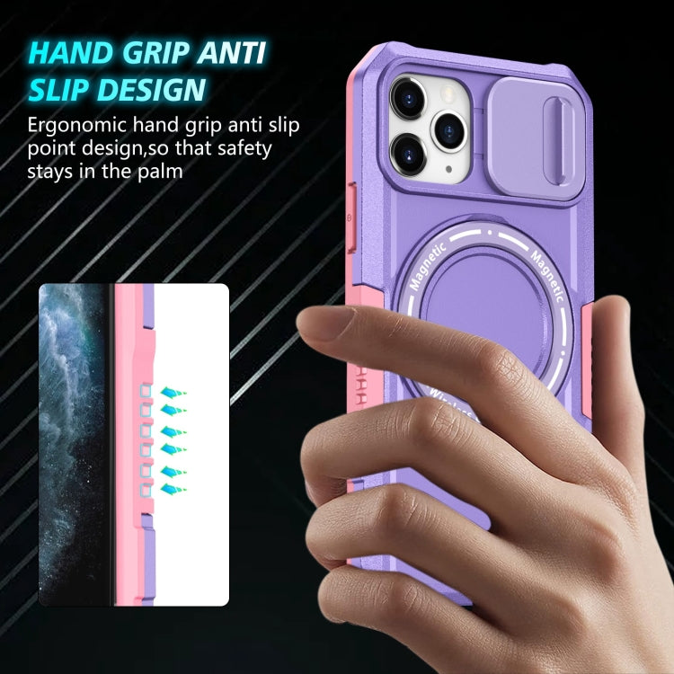 Funda para teléfono iPhone 11 Pro Sliding Camshield Magsafe Holder TPU Hybrid PC (Rosa Púrpura)