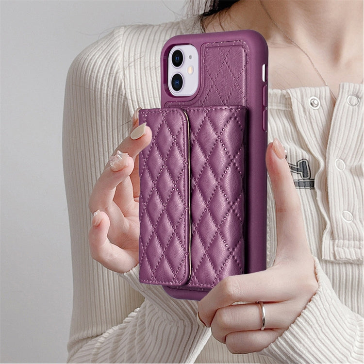 Funda Cartera para iPhone 11 con Hebilla de Metal Vertical Estuche de Cuero Rómbico (Púrpura)