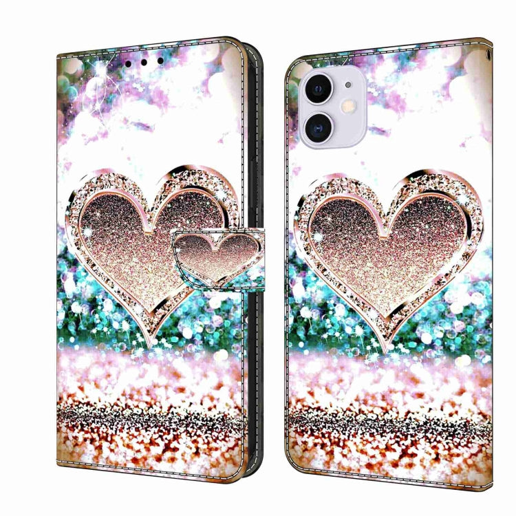 Funda Protectora de Cuero para iPhone 11 Crystal 3D a Prueba de Golpes (Corazón de Diamante Rosa)