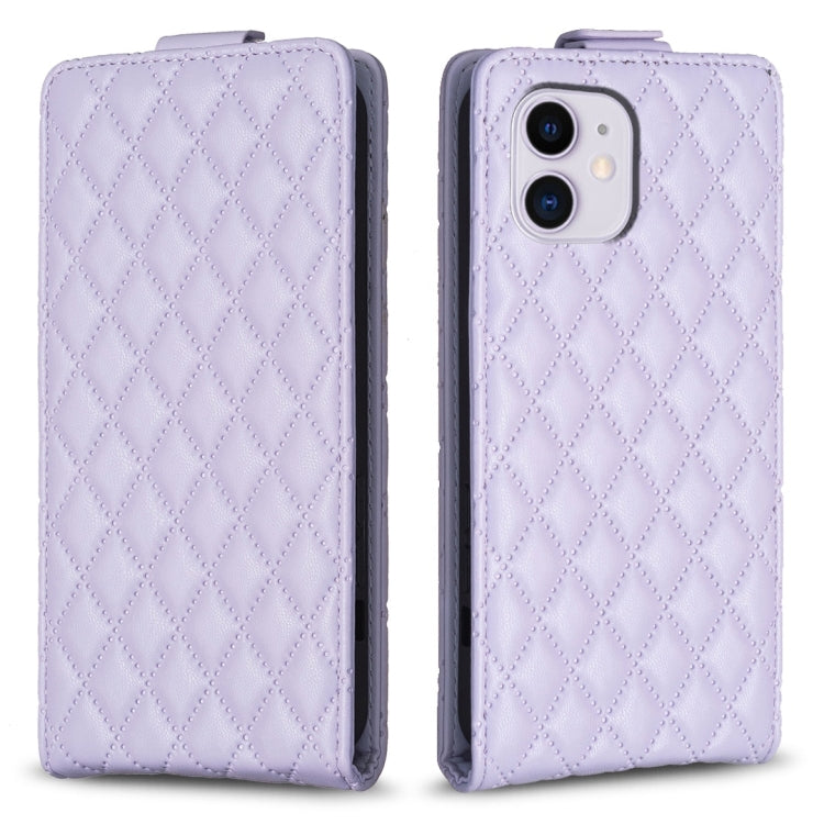 Funda de Cuero para iPhone 11 Diamond Lattice Vertical Flip (Púrpura)